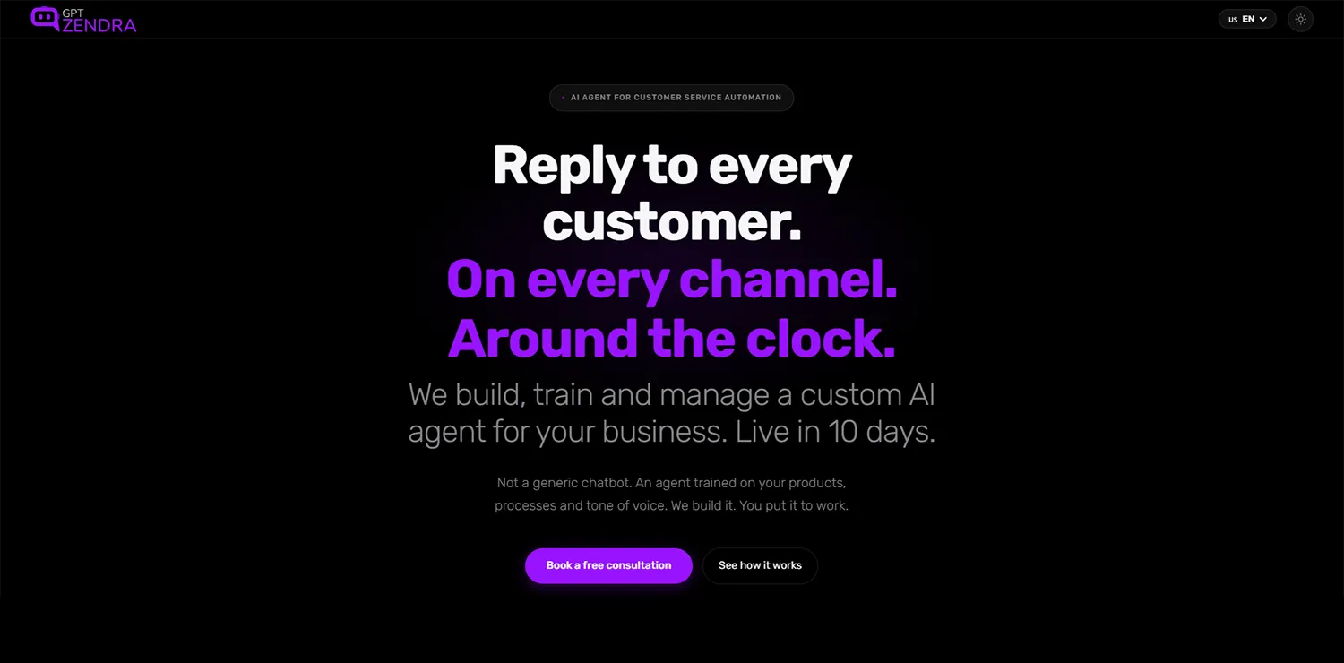 GPTZendra is an AI automation platform that helps businesses build, train and deploy AI agents, voice bots and intelligent workflows. Automate customer interactions across WhatsApp, Instagram, Telegram and web — without coding.